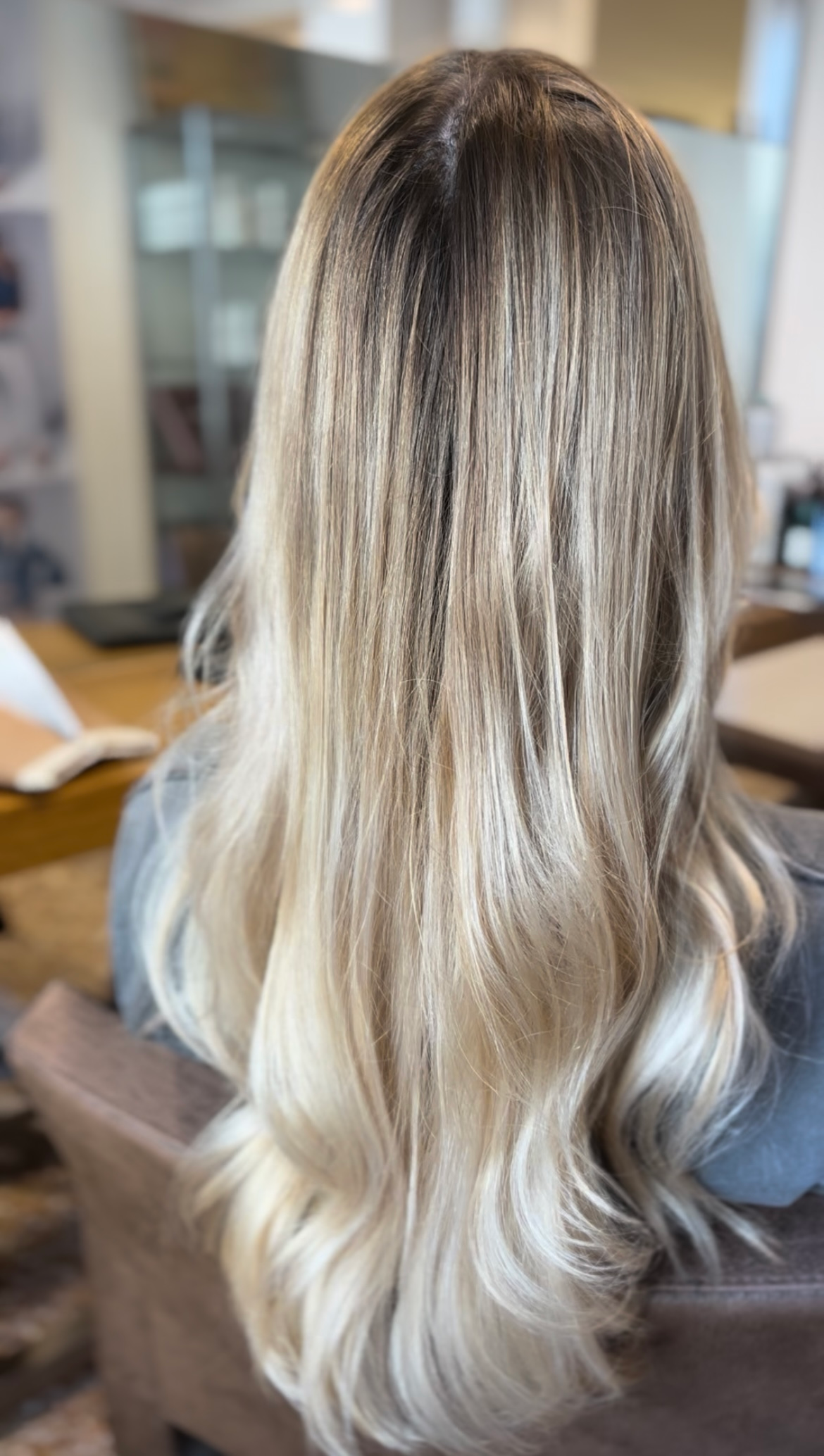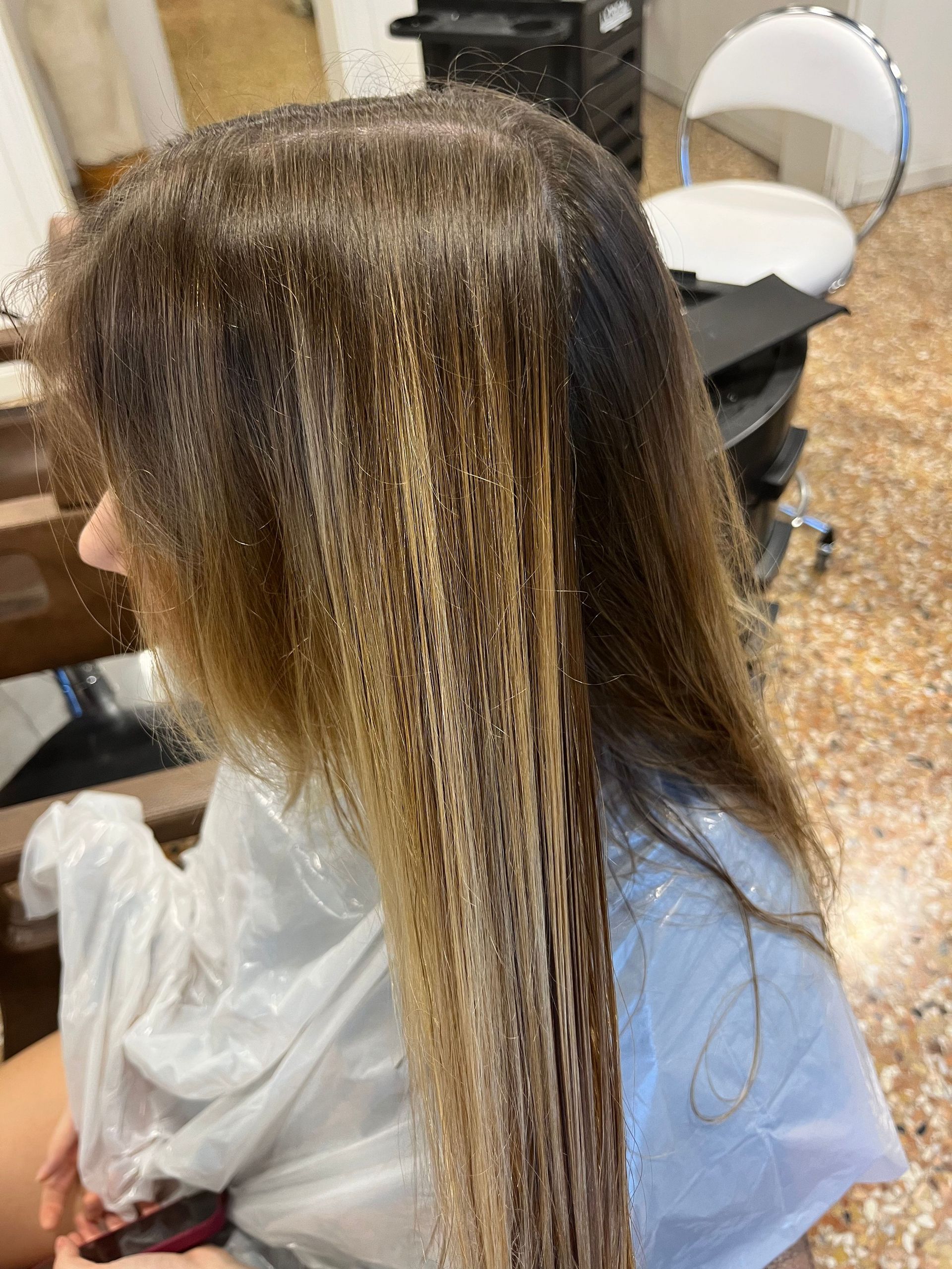 E' una tecnica di colorazione verticale che crea un effetto naturale e sfumato, simulando il riflesso del sole sui capelli, con un passaggio di colore più intenso verso le punte